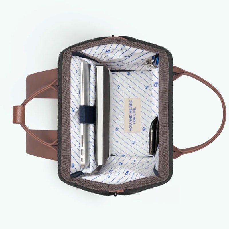 This backpack comes with 2 switchable pockets: Brown (Carcassone) + Beige with pattern (Comtal Castle)