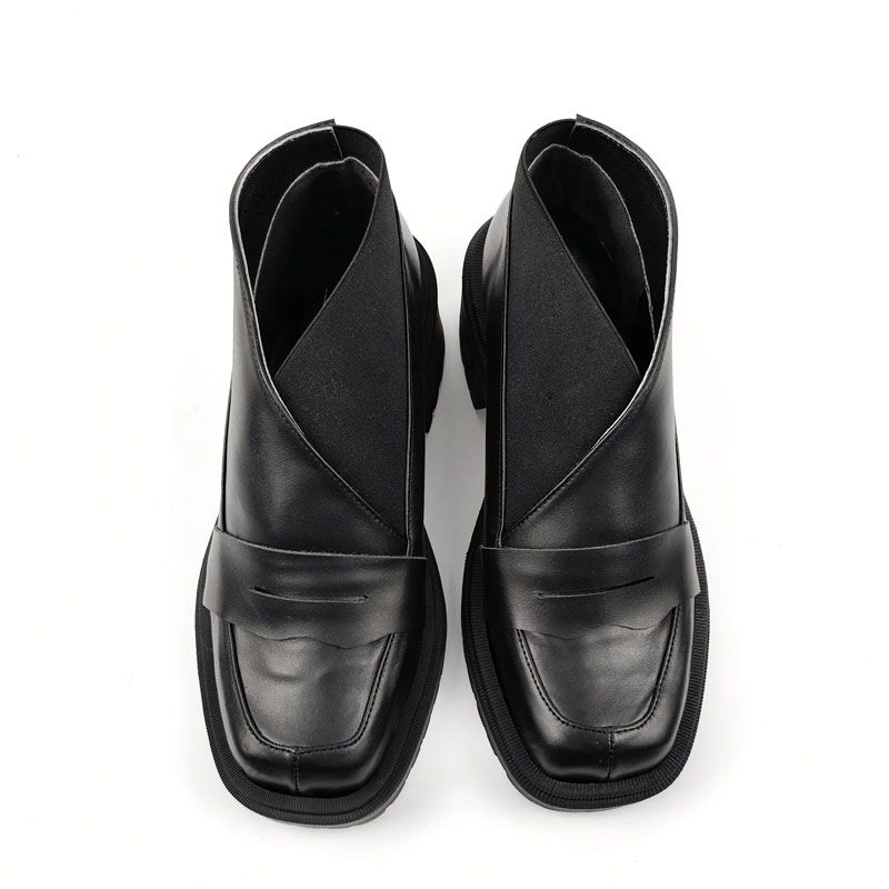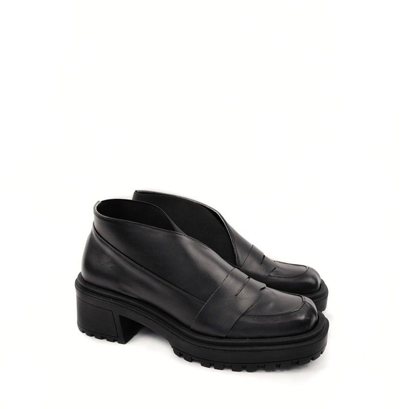 Χειροποίητα δερμάτινα παπούτσια τύπου μοκασίνια, με χοντρές σόλες από λάστιχο